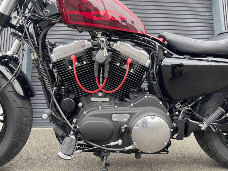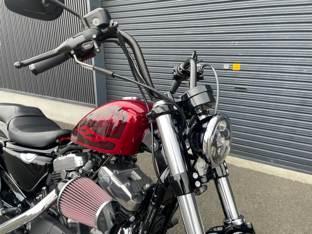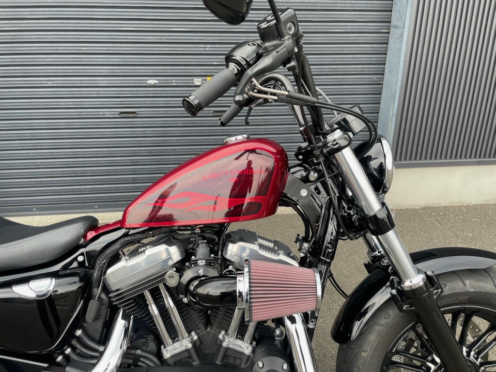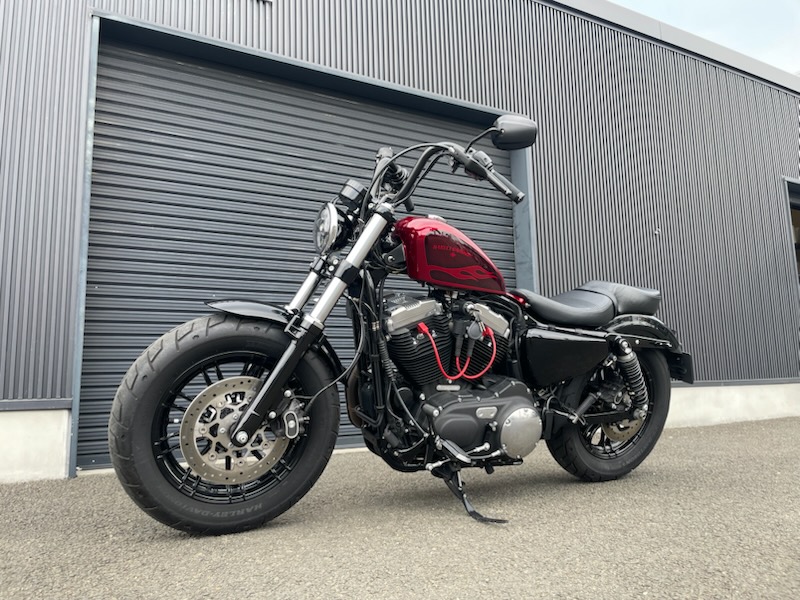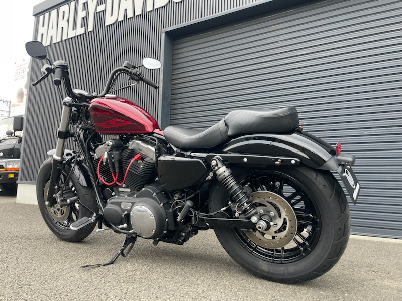 H-D純正レッドフレークカラーがチャームポイントな48です。