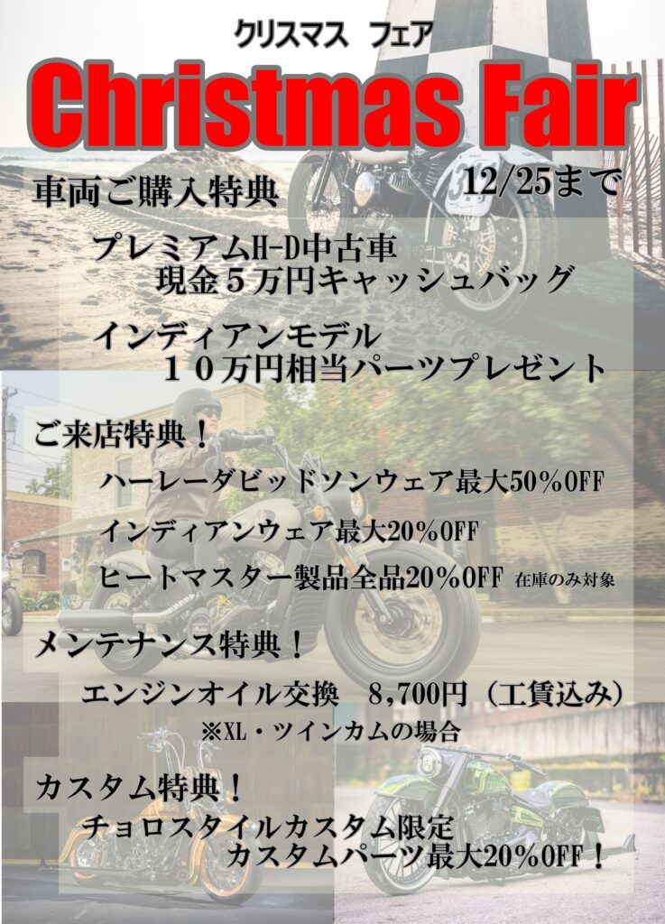 他社様の様な◯0万円分カスタムサポートの様なド派手なネタはございませんが、当社に出来る最善の技術を用いてご用意した世界に1台のプレミアムなUsed H-Dを35台ほどとインディアンを数台ご用意いたしました。