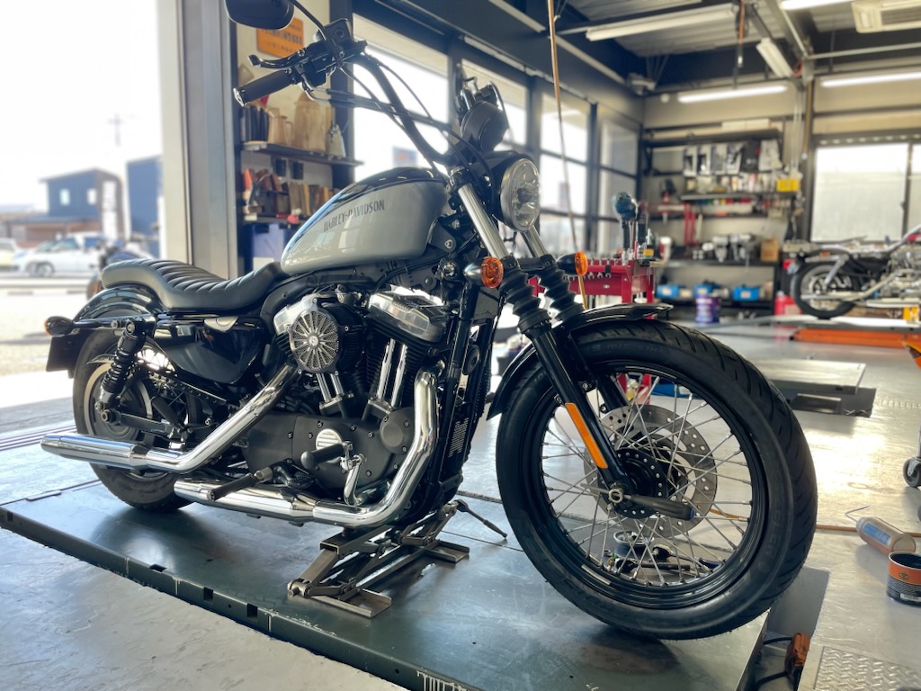 仕入れたハーレーが中古車としてショールームに並ぶまで。