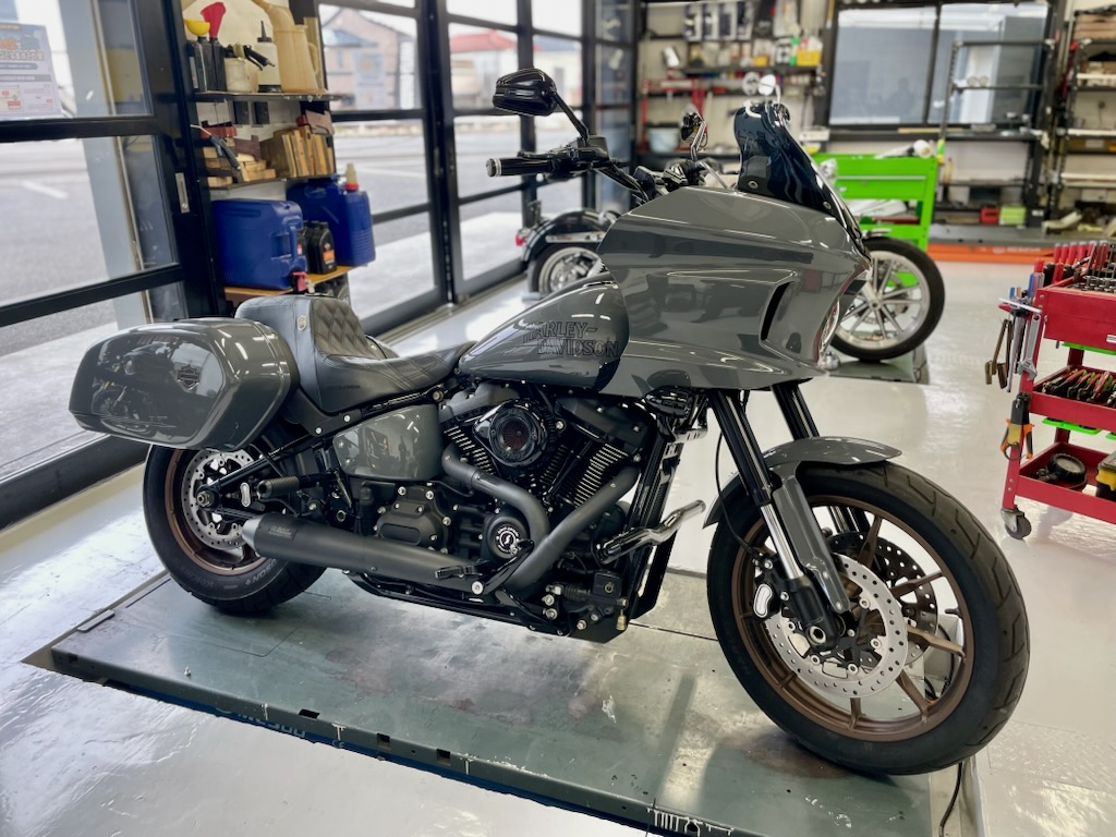 様々なハンドルを愛車のFXLRSTに替わるがわる装着して、ご自身の最適なポジションを探し求めるオーナー様。