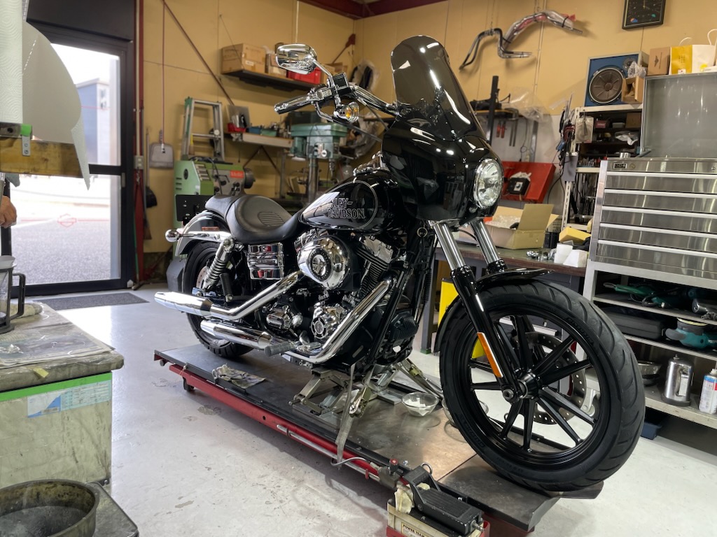 以前から手配していたTスポーツレプリカカウルが急遽、入荷したので、作製中のダイナローライダーに装着する事にしました。